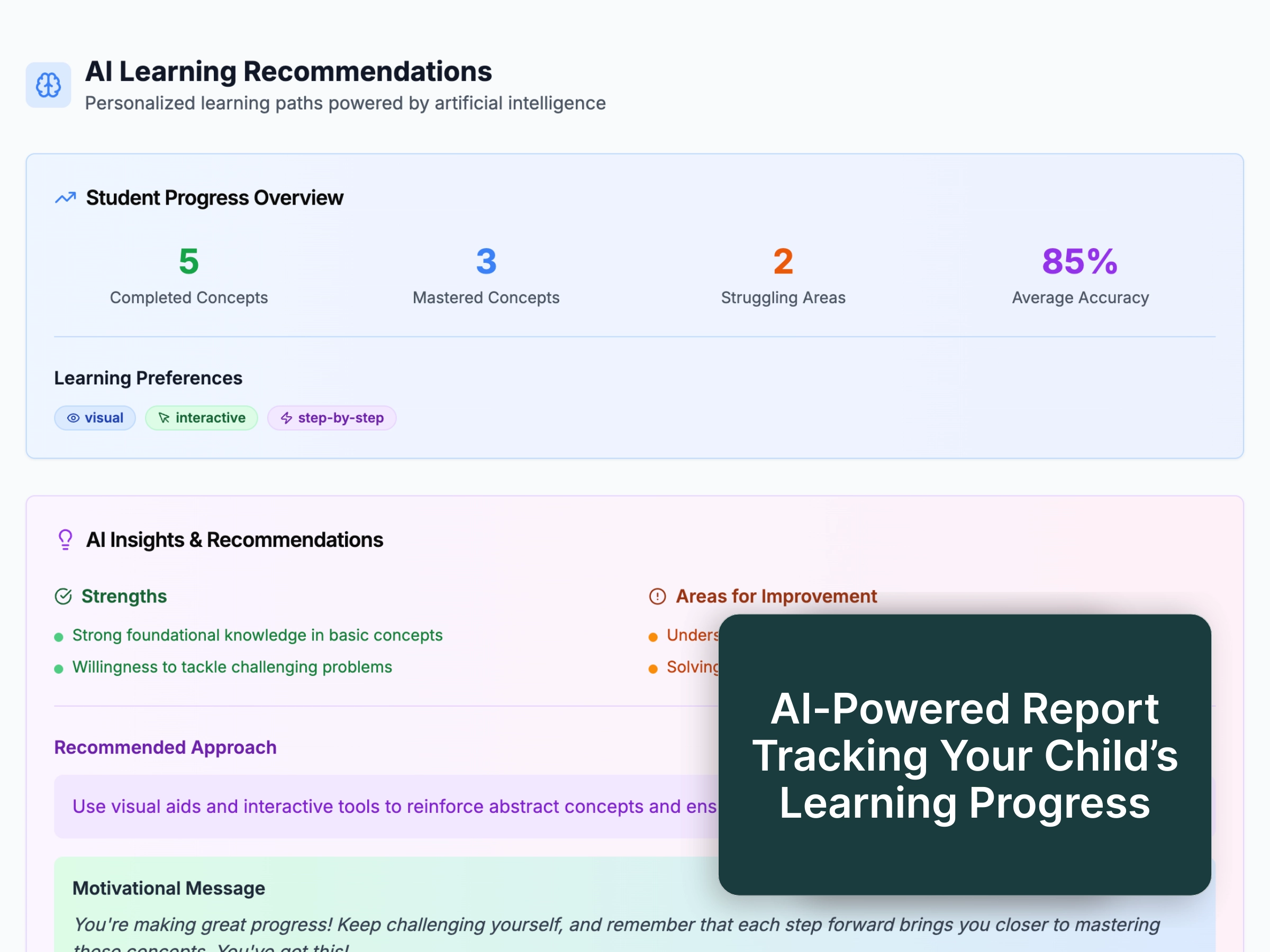 Our unique approach combines the best of both worlds: personalized AI analysis with caring, expert human tutors who understand your child's learning style.