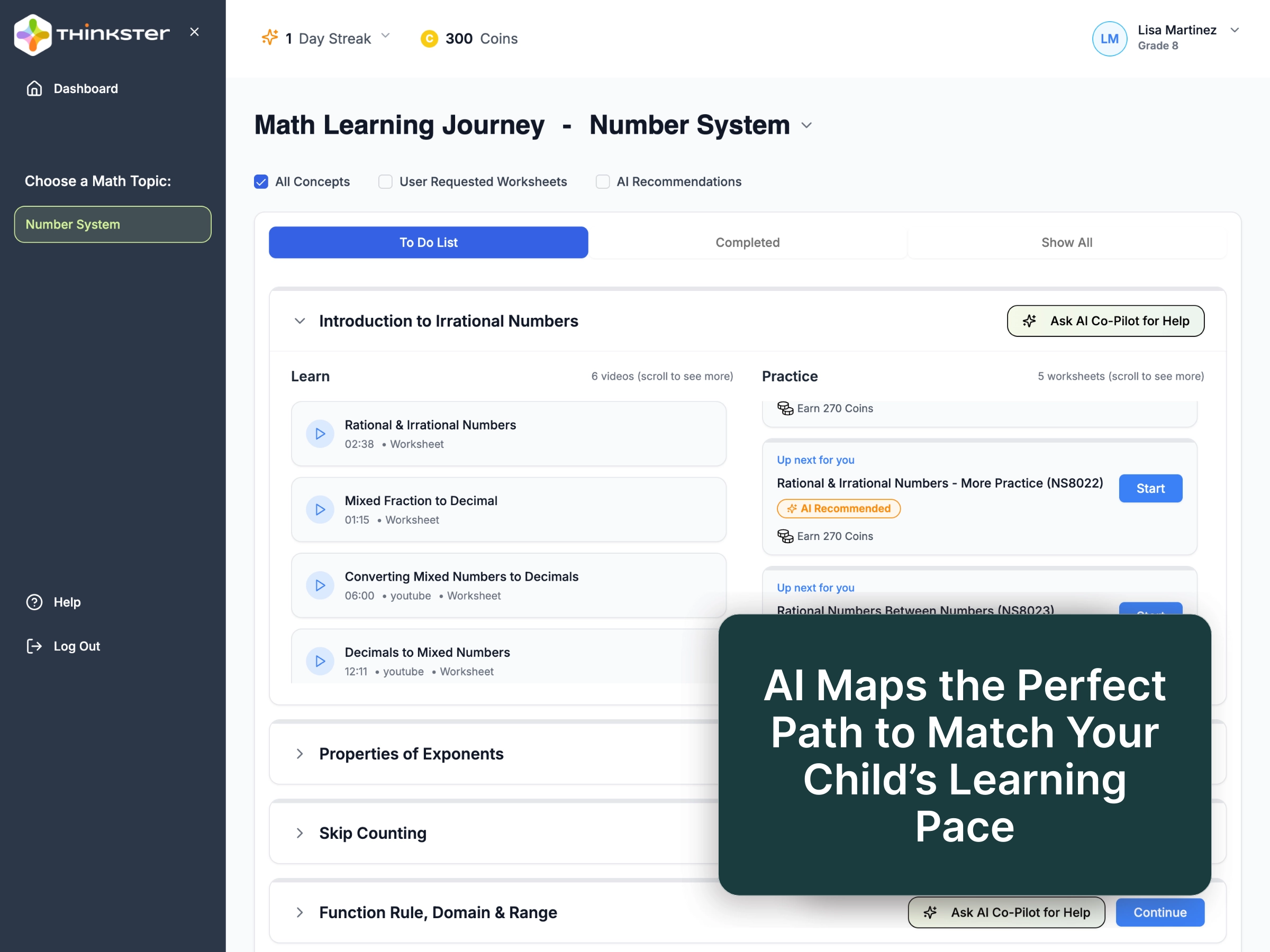 Every child's journey is different. Whether they need to catch up, stay motivated, or speed ahead - choose the path that fits best and explore how Thinkster adapts to it.
